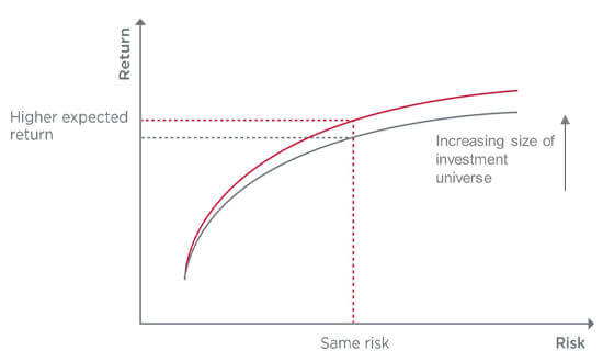 Put in the terms of modern portfolio theory, the more securities or asset classes at your disposal, the higher your efficient frontier.