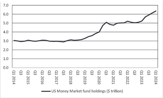 “The prospect of the Fed cutting interest rates when there is $6.4 trillion sitting in US money market funds, ready to look for a new home, may just have students of stock market bubbles reaching for their history books.”