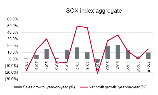 Source: Company accounts, for all 30 members of the SOX index, Marketscreener, analysts’ consensus forecasts