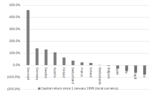 After all, these countries suffered the most in the wake of the debt crisis that started in earnest just under a decade ago. Stock markets clearly believe they have not enjoyed anything like the same degree of economic benefits from monetary union as Germany. (Eagle-eyed investors will note that two of the three best-performing developed European stock markets since the euro’s launch do not even use the single currency).