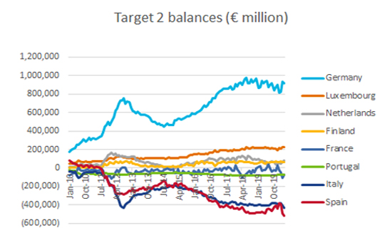 This north-south divide can be seen in another way, via the TARGET2 payments mechanism.