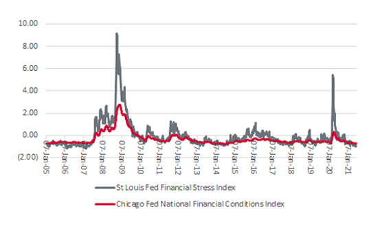 Perhaps the US Federal Reserve is laying the groundwork for tightening monetary policy after all and taking these initial steps to test how financial markets (and the economy) will react. The answer appears to be ‘so far, so good’ on both counts. The S&P 500 trades at record highs while there is no sign of financial stress anywhere in the system, at least according to the tried-and-tested St. Louis Fed Financial Stress and Chicago Fed National Financial Conditions indices. Both are trading very close to their all-time lows.