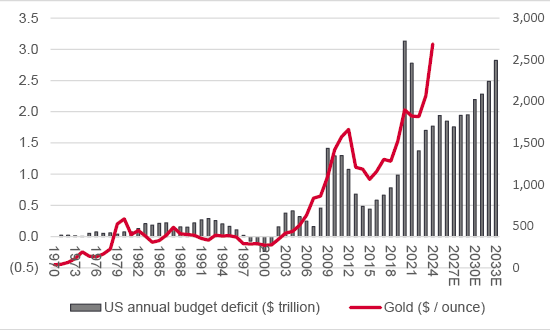 The new Labour Government in the UK still taking brickbats as it seeks to address Britain’s fiscal deficit, a French administration is in tatters after just three months as its efforts to raise taxes and cut spending get the thumbs down and, all the while, America’s federal debt continues to mushroom. President-Elect Trump’s policy package could even accelerate growth in Government borrowing from what is already a record high of $36 trillion.