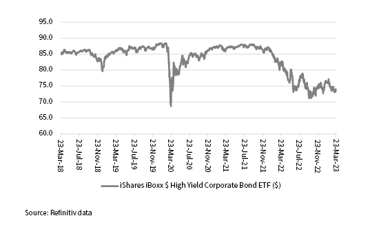 A darker picture still emerges from high-yield (or ‘junk’) bonds. Highly indebted firms are more geared into economic upturns (which boost cashflow and their ability to pay interest on time) and downturns (which have the opposite effect). The iShares iBoxx $ High Yield Corporate Bond ETF (HYG:NYSE) tracks and delivers the performance, minus its fees, of nearly 1,200 ‘junk’ bonds and it has a trading history that goes back to 2007. This junk bond tracker has dipped below $80 only four times in its history – 2008 (Great Financial Crisis), 2016 (mid-cycle growth stumble), 2020 (COVID) and now. This suggests economic trouble, and perhaps rapid disinflation or even deflation, lies ahead.