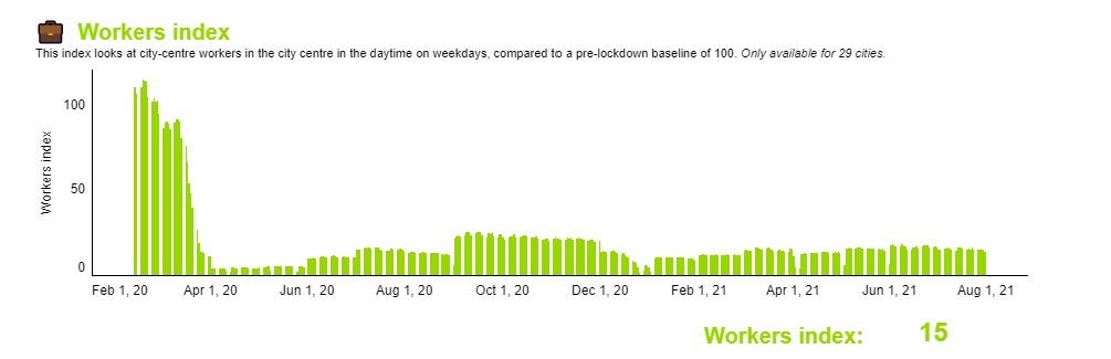 City centre workers still shun the office post-freedom day
