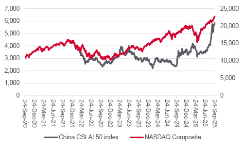 Make of that what you will, but right now, those who are riding the Artificial Intelligence (AI) wave are the ones getting rich and looking smart: the tech-laden NASDAQ index trades at an all-time high; Europe’s two biggest companies by stock market capitalisation, SAP and ASML, are both AI plays, as is Asia’s most highly valued company, TSMC; and the Chinese AI 50 index is going through the ceiling.