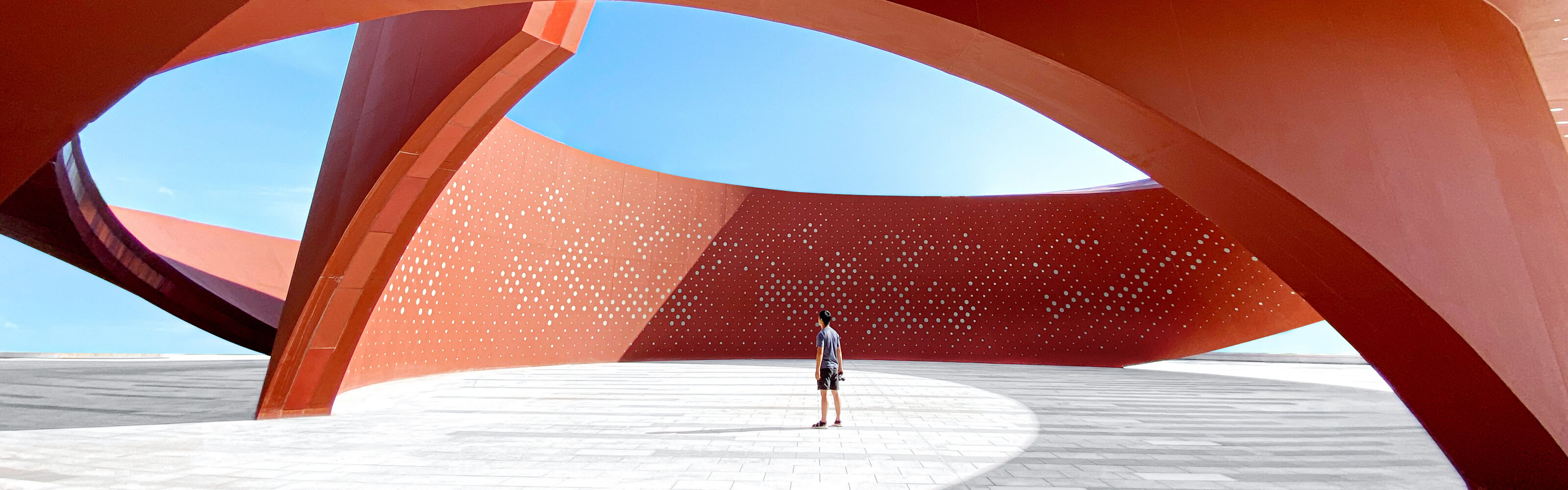 Man stood under red structure