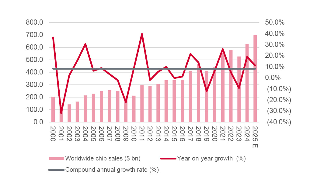 Global chip sales are expected to increase for the second year in a row in 2025