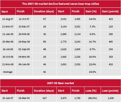 The 2007–09 market decline featured seven bear-trap rallies