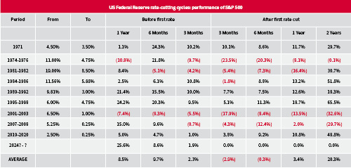 Such a scenario sounds very beguiling, but market history suggests that advisers and clients with substantial equity exposure might like to be a little careful about what they wish for with regard to monetary policy for three reasons, even if the FTSE All-Share and S&P 500 have, on average, benefited from cheaper money on a two-year view, once the initial rate cut has been announced: