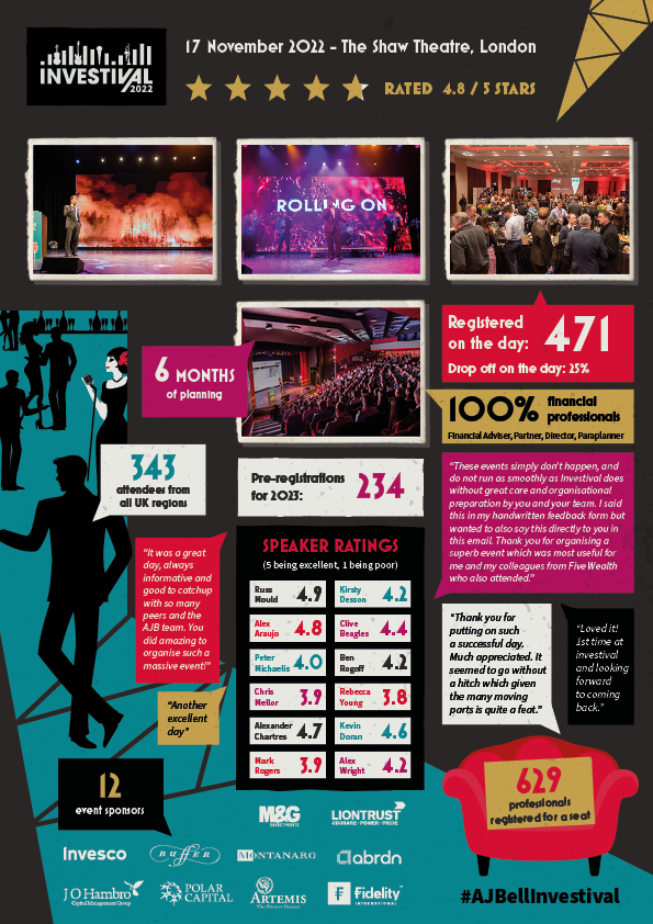 This year’s Investival lived up to its reputation, delivering another fantastic day of insight and entertainment to the 350 plus advisers who joined us at London’s Shaw Theatre.