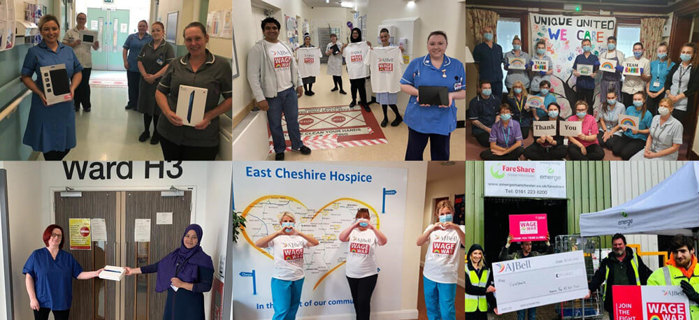 Our Wage War on COVID campaign continues to help people who have been affected by the crisis. We have now raised £382,000, which has allowed us to distribute almost 600 digital tablets to care homes and hospitals so that residents and patients can stay in touch with their loved ones.