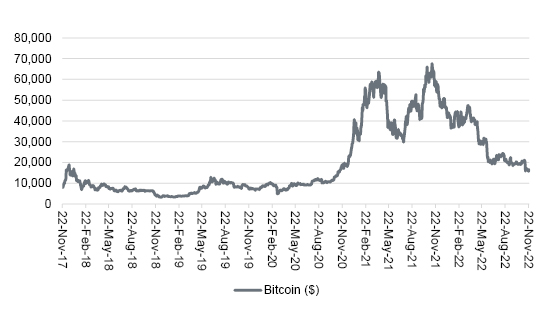 Bitcoin has lost a fifth of its value since news of FTX’s financial troubles first broke, yet it could surely have been worse. This column assumes the fall-out in equity and bond markets would be much greater if the world’s fifth-largest investment bank or investment platform were to fail. Some may therefore treat Bitcoin’s price resilience with suspicion rather than approbation.