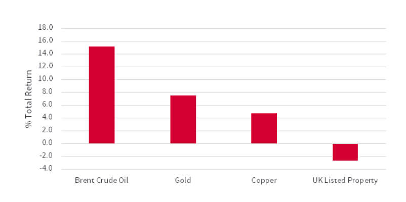Within alternatives, listed UK Property came under pressure from rising bond yields. In commodity markets, the oil price responded positively to better-than-expected global activity data, even although supply remains marred by security incidents in the Middle East and the ongoing conflict between Russia and Ukraine. The gold price reached a record high as some countries increasingly view it as a alternative ‘safe haven’ to parking cash in the US dollar banking system.