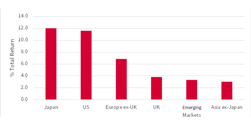 Emerging market equities had another quarter of varied returns, with India and Taiwan performing well, whilst markets in Brazil and South Africa struggled. Chinese equities fell sharply in the first couple of weeks of the year, then staged a strong rebound into the quarter end on the back of improving economic data and interventionist rhetoric from policymakers. Indian equities did well but were outshone by their developed market peers.