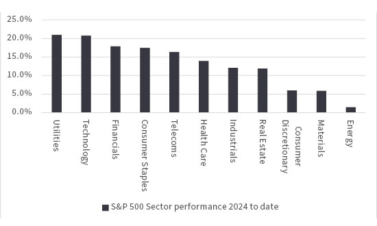 Source: LSEG Refinitiv data, as of 10 September 2024, based on S&P 500 sectors