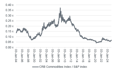 …Commodities trade near all-time lows relative to equities