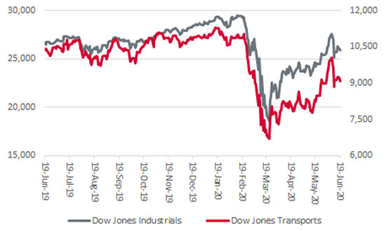 The second is the Russell 2000 small cap index. Small caps tend to be more closely tied in to the economic fortunes of their home market and their share prices tend to be a good guide to the level (or lack) of risk appetite amongst investors. The Russell has outperformed the Dow Jones’s mega caps over one year and its recent loss of momentum could be down to fears of a second wave of COVID-19 in the US as much as it is to the Fed stepping back.