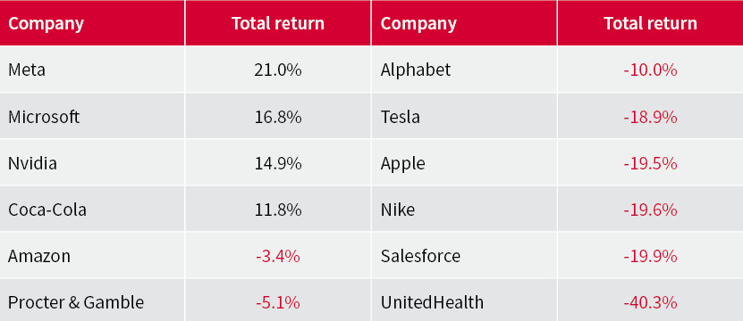 On top of this, four out of the Magnificent Seven group of mega cap tech stocks have delivered negative returns for investors so far in 2025. These seven companies effectively drove the US market higher in 2023 and 2024, so a reversal this year for Alphabet, Amazon, Apple and Tesla is significant as they’re dragging the market down.