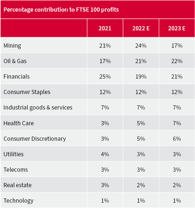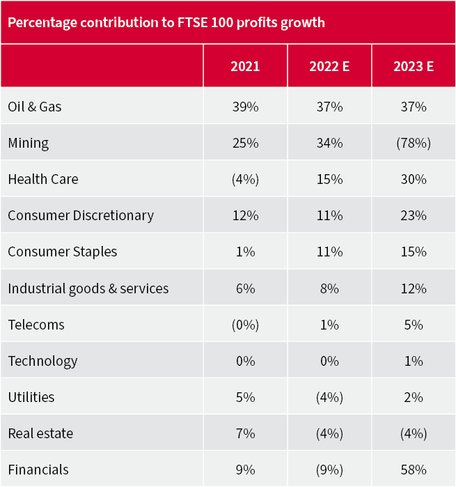 However, the FTSE 100’s profit mix means forecasts of profit growth in 2022 and 2023 may not be such a dubious proposition as it may first appear.