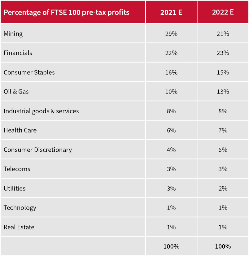 Just three sectors are expected to generate around 60% of FTSE 100 earnings in 2021 and 2022