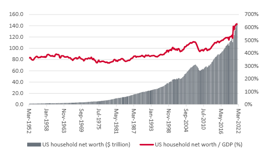 “US household wealth stands at a record high relative to GDP, thanks to booming stock and house prices. If that goes into reverse, the hit to confidence, and consumers ability and willingness to consume, could be considerable.”