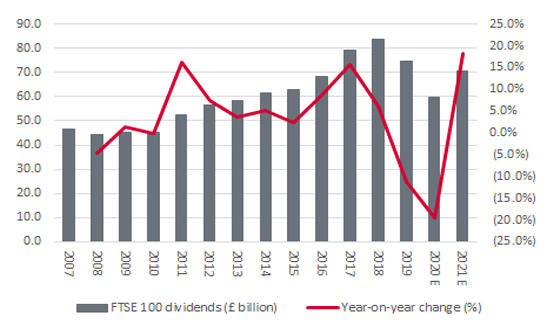 FTSE 100 dividends are expected to rebound 18% after 2020’s 20% drop