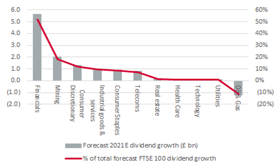 “Four fifths of 2021’s expected £10.9 billion increase in overall FTSE 100 dividends is forecast to come from just three sectors, in the form of Financials, Miners and Consumer Discretionary.”