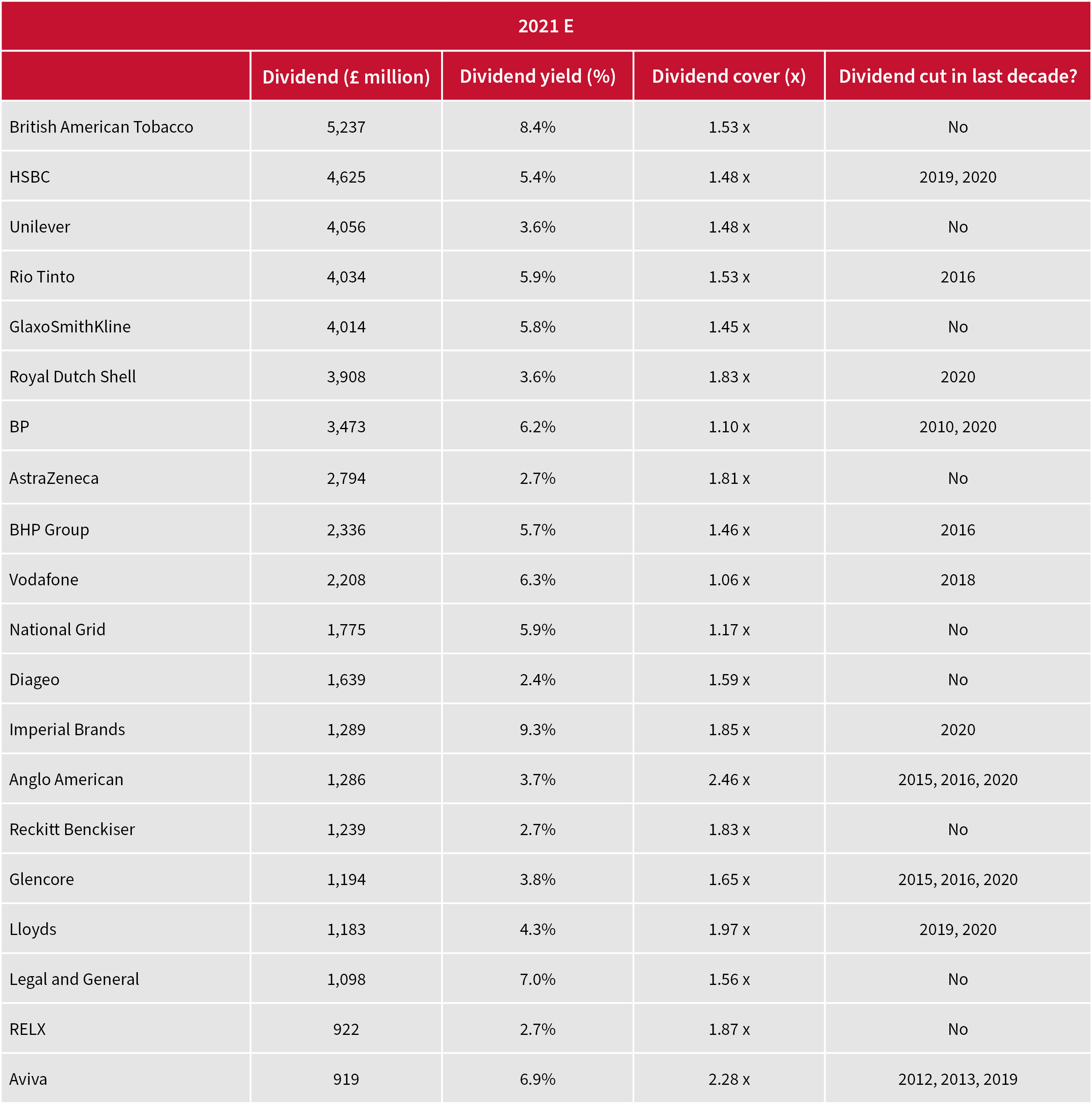 Helpfully for those of a nervous disposition, only one of the big five – HSBC – is forecast to be among 2021’s top 20 dividend payers by value within the FTSE 100. (Barclays is the next lender in the forecast rankings, at twenty-first.)