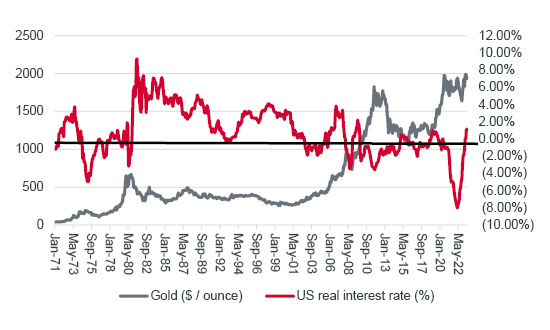 Gold seems to like negative real rates and hate positive ones