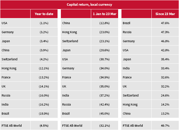 No one would argue that the White House has offered a coherent policy on COVID-19 – or, for that matter, many other pressing issues – yet the US sits at the top of the performance tables for 2020 to date. And even if questions are being asked about Russia and Brazil, it is not stopping their stock markets from being the best performers since the year’s lows in late March.