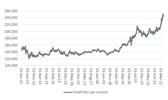 The gold price is surging (in yen)