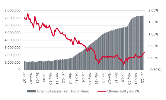 Source: Bank of Japan, FRED – St. Louis Federal Reserve database