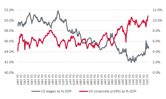US corporate profits have benefited from sustained pressure on wages