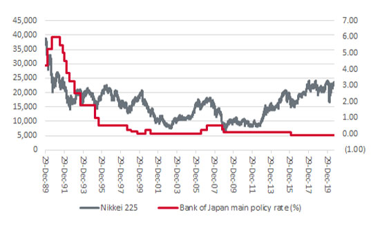 Source: Refinitiv data, Bank of Japan. Since Nikkei 225's peak on 31 December 1989.
