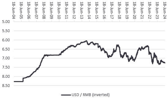 The financial markets seem pretty convinced that China has a growth problem, thanks to the real estate bust, build-up of unproductive debt and growing geopolitical pressure that means the West is busily erecting trade barriers to keep out cheap Chinese goods, or obstruct their development, where it can. This may be why its currency keeps sliding lower – markets are expecting either an interest rate cut or an outright adjustment of the value of the renminbi (in effect a devaluation), which is trading near levels last seen in 2008, in the view that it cannot manage interest rates, a quasi-pegged currency and facilitate free capital flows all at the same time.