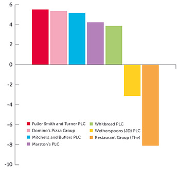 Wetherspoon’s is an unsurprising outlier; despite the fact the pub chain has relaxed its stance on football for the tournament, its decision to keep the sound on mute has rather dampened investor appetite, with many wondering if that will be a strike for or against Tim Martin’s chain.